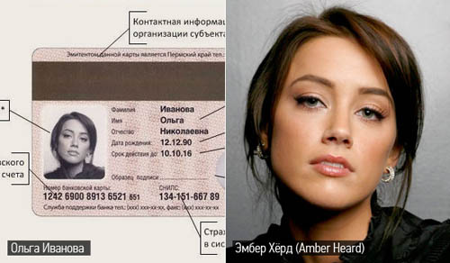 Лицом российской Универсальной электронной карты (УЭК) временно стала американская актриса Эмбер Хёрд / Amber Heard, которая снималась в сериале Тайны Палм-Спрингс / Hidden Palms.