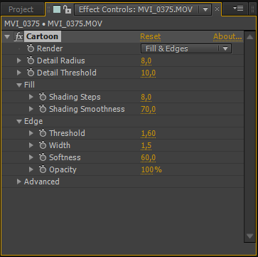Протестируем OpenGL видеокарты Gainward GeForce GTX 550 Ti 1024MB в Adobe After Effects CS6, применяем к композиции следующий эффект: Effect > Stylize > Cartoon. Настройки эффекта оставляем по-умолчанию