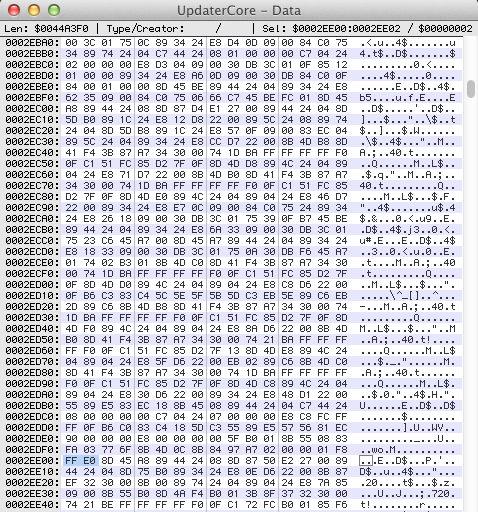 Теперь, чтобы новые обновления Adobe могли устанавливаться надо пропатчить исполняемый файл , его гнездо находится здесь: /Library/Application Support/Adobe/OOBE/PDApp/UWA/UpdaterCore.framework/Versions/A/UpdaterCore (путь можно найти с помощью Cmd+F и вбить к примеру UWA).