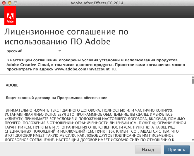 Adobe After Effects CC 2014. Установка. Выполняется установка Adobe After Effects CC 2014.