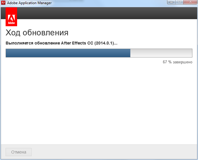 В Adobe Application Manager будет выполняться обновление Adobe After Effects CC (2014.0.1).