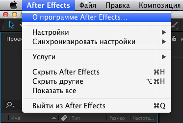 Выполняем команду: After Effects > О программе After Effects...