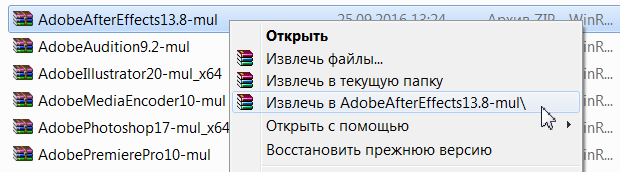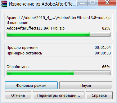 Запустится процесс извлечения архива AdobeAfterEffects13.8AllTrial.zip.