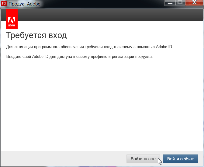 Требуется вход. Нажимаем на кнопку: Войти позже.