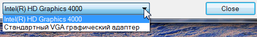 Выключаем компьютер, подключаем DVI-D кабель к интегрированной видеокарте: Intel HD Graphics 4000 (GT2). Запускаем утилиту GPU-Z и смотрим на доступные видеоадаптеры: