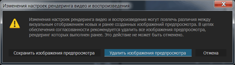 В окне Изменения настроек рендеринга видео и воспроизведения, нажимаем на кнопку: Удалить изображения предпросмотра.