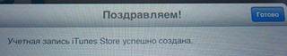 По окончании нас поздравят с тем что учетная запись itunes Store успешно создана. Нажимаем на кнопку: Готово.