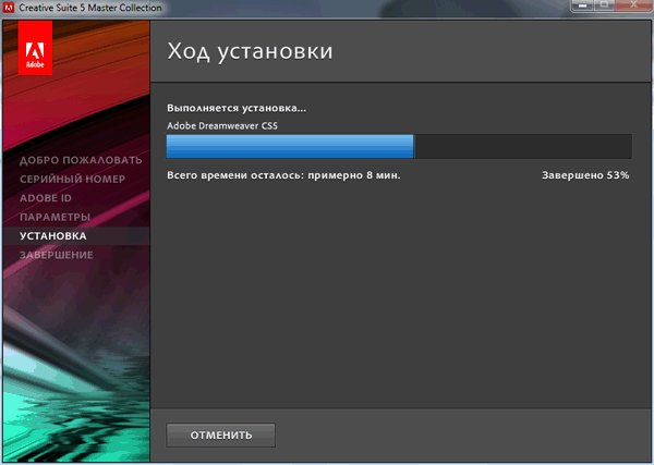 Установка программ: устанавливаем Apple QuickTime 7.67.75 Professional, далее устанавливаем набор программ: Adobe Creative Suite 5 Master Collection. Принимаем лицензионное соглашение, нажав на кнопку: Принять.