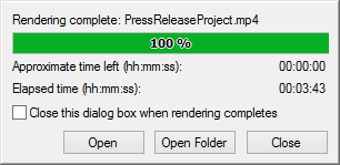 Итоговое время просчета: 3 минуты и 43 секунды, против 3 минут и 39 секунд у Intel HD Graphics 5500. Что еще раз подтверждает, что для программы Sony Vegas Pro 13 для работы с OpenCL лучше выбирать чипсеты AMD, а не nVidia, которая в OpenCL задачам проигрывает даже интегрированной графике Intel.