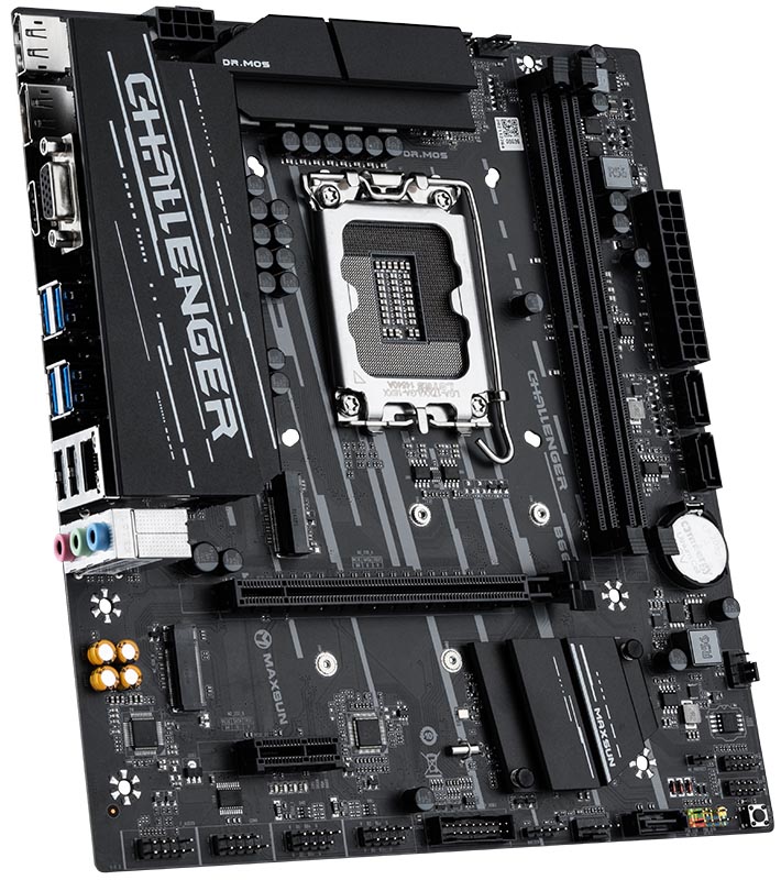 Maxsun MS-B660M Challenger & SOYO SY-B660M Classic: 8+1+1 фаз, VRM плностью закрыт двумя большими радиаторами, VRM использует силовые каскады Vishay SiC654 (50А). Нет 10Гбит-ных USB 3.2 портов, но есть VGA, 3x SATA & 2x M.2 NVMe PCIe 4.0 x4.