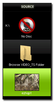 В разделе Source выбираем директорию с файлами: DVD привод с диском, VIDEO_TS папка или просто файл на жестком диске.