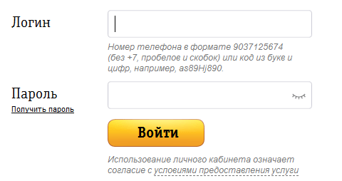 Если вы впервые заходите в кабинет, введите свой номер телефона в формате 9037125674 (без +7, пробелов и скобок). Вновь вбиваем в поле Логин, номер мобильника и нажимаем на кнопку: Отправить. И получаем на телефон СМС: Временный пароль в личный кабинет «Мой Билайн». Логин (номер телефона), пароль fFappfmY, по адресу my.beeline.ru. И вводим логин и пароль в соответстующие поля. Получаем сообщение: Ваш пароль устарел. Пожалуйста, придумайте новый. Пароль должен содержать от 8 до 20 латинских букв и цифр в произвольном порядке. Пароль должен содержать заглавные буквы. В целях безопастности никому не сообщайте свой пароль!