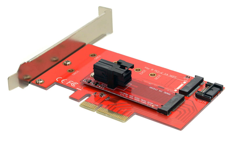 Так и в виде карты расширения: CY (ChenYang) SA-197/SF-094 с поддержкой установки одного U.2 адаптера и второго M.2 B-key накопителя с интерфейсом SATA (хотя сам B ключ поддерживает следующие интерфейсы PCIe x2, SATA, USB 2.0 и 3.0, звук, PCM, IUM, SSIC и I2C).