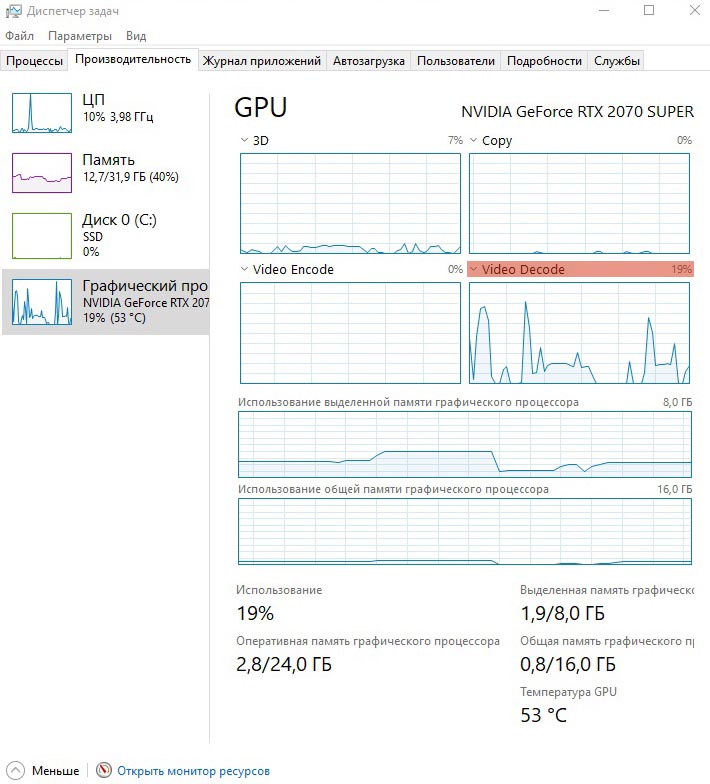 Видеокарта GeForce RTX 2070 Super не использует NVENC для декодирования:
