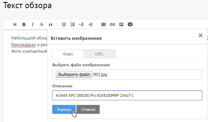 Добавляем текст и фото, нажимаем на кнопку: Хорошо.