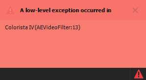 При воспроизведении таймлайна получили ошибку утечки памяти: A low-level exeption occured in Colorista IV (AEVideoFilter:13).