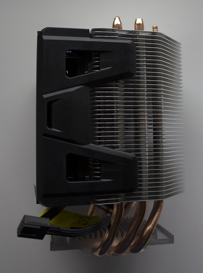 Три медные тепловые трубки и алюминиевое основание радиатора с технологией прямого контакта с крышкой процессора.