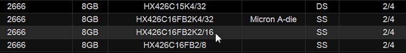 Далее, ищем модули которые есть в продаже, и которые есть в этом списке, вот одно из совпадений: Kingston HyperX Fury Black HX426C16FB2K2/16. Так как встроенный двухканальный контроллер памяти процессоров 9-го поколения Intel Core поддерживает базовую частоту 2666МГц, то ищем модули памяти: DDR4-2666.