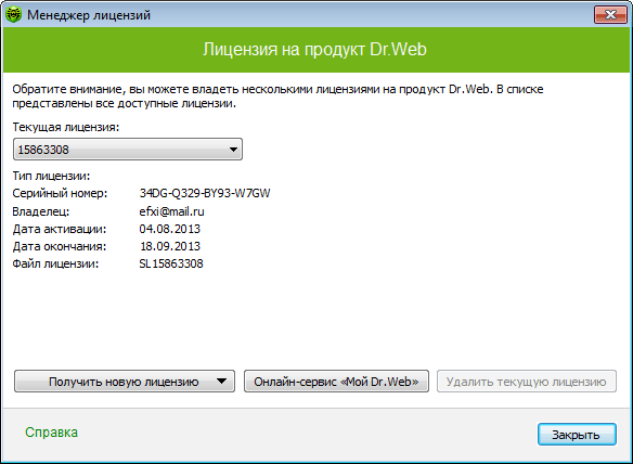 Открываем полученное письмо и видим, Ваш серийный номер Dr.Web. При необходимости можно установить свежую версию антивирусника. Переходим по ссылке: Скачайте дистрибутив Dr.Web Security Space.