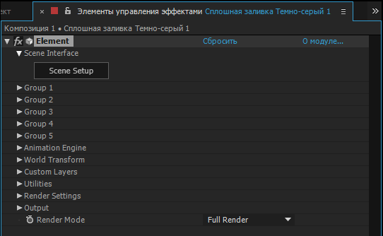Запустится интерфейс плагина Video Copilot Element 3D v2:
