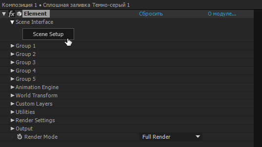 В панеле Элементы управления эффектами, нажимаем на кнопку: Scene Setup.