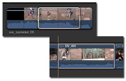 3.Replace Edit. Выделяем клип на таймлайне, далее выбираем клип в браузере событий, можно при проигрывании с помощью клавиш I и O ограничить область: