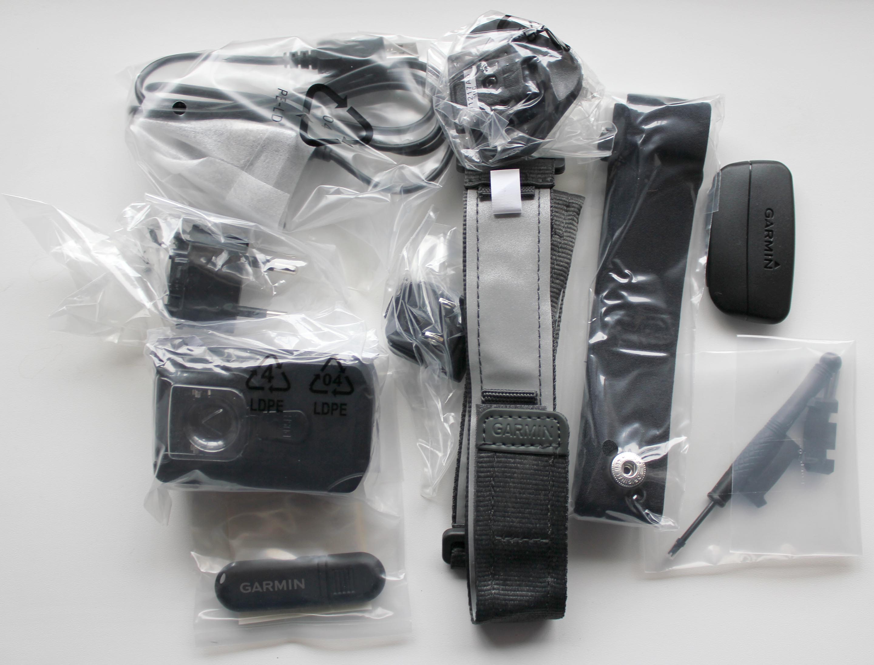 Что еще шло в комплекте с часами Garmin Forerunner 410 (кроме макулатуры и CD диска): USB ANT Stick (USB2 Wireless USB Stick), монитор сердечного ритма, два дополнительных ремешка, зарядное устройство переменного тока, зажим для зарядки (кликабельно):