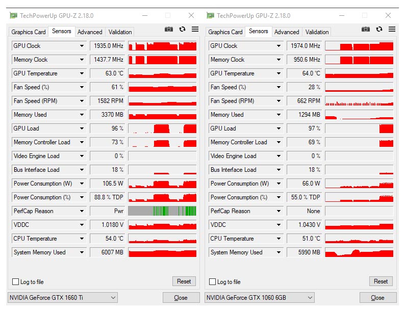 NVIDIA GeForce GTX 1660 Ti, GPU Load - 96%, тактовая частота - 1935МГц, было утилизировано 3370 Мб видеопамяти GDDR6.