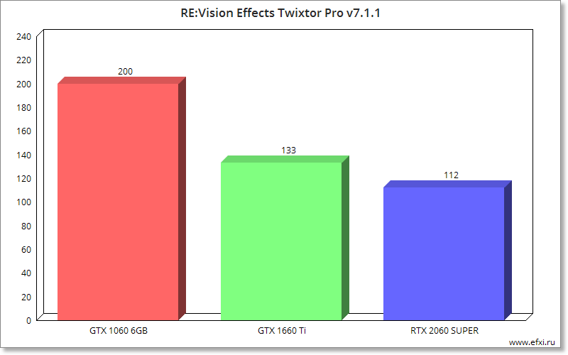 Протестируем видеокарту Gigabyte GeForce RTX 2060 SUPER GAMING OC 8G (GV-N206SGAMING OC-8GC) построенную на чипсете GeForce RTX 2060 SUPER (TU106) в OpenCL плагине: RE:Vision Effects Twixtor Pro и программе Adobe Premiere Pro CC 2020.