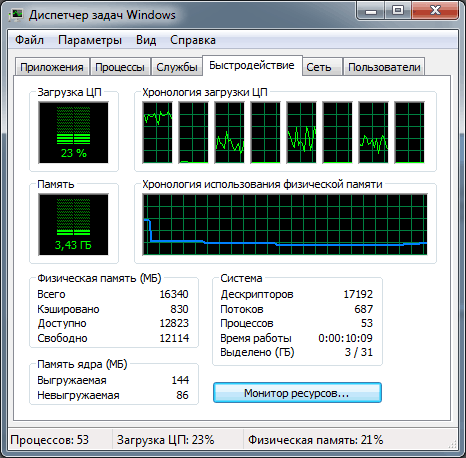 Вывод видео в 1080р25 (пресет AVC-Intra Class 100 1080 25p), загрузка центрального процессора и оперативной памяти: