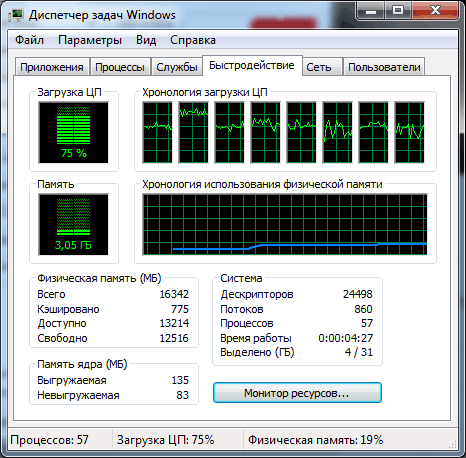Загрузка CPU/RAM при финальном рендере таймлайна в Sony Vegas Pro 12 с плагином использующем OpenGL ускорение proDAD Vitascene V2 Pro.