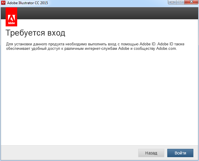 Руководство как скачать и установить программу видеомонтажа Adobe Illustrator CC 2015. Как качать по прямым ссылкам читаем здесь. Вводим Adobe ID.