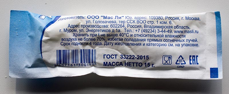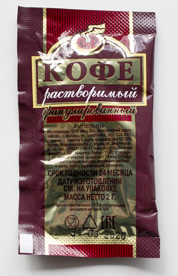 Вес: 2 грамма. Изготовитель: ООО "Мас Ли". ГОСТ. Дата изготовления: 31.03.2020. Срок годности: 24 месяца.