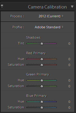 Закладка Camera Calibration (Ctrl + 8) – здесь можно найти настройки Adobe Camera Raw под любую камеру и профили камер. По-умолчанию Lightroom автоматом определяет модель цифровой камеры, с RAW-файлами которой мы работаем, и применяет к ним определенные настройки профиля камеры. Но иногда Lightroom неправильно отображает цвета, или в базе данных нет профиля для цифровой камера, в таких случаях используются настройки в Camera Calibration, и так можно подкорректировать отображение и преобразование RAW-файлов с конкретной цифровой камеры.
