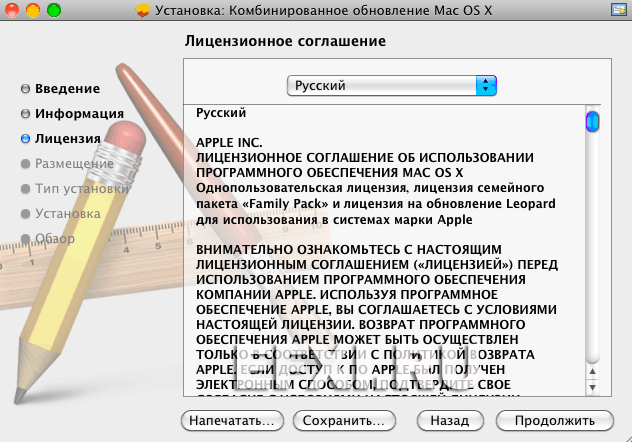 В окне Установка: Комбинированное обновление Mac OS X, нажимаем на кнопку Продолжить.