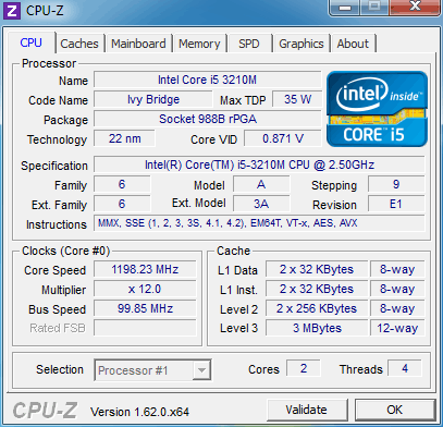 Двухъядерный 22нм процессор Intel Core i5-3210M с поддержкой четырех потоков и наборов инструкций: SSE 4.2 (особенно важно для продуктов Adobe), AVX.