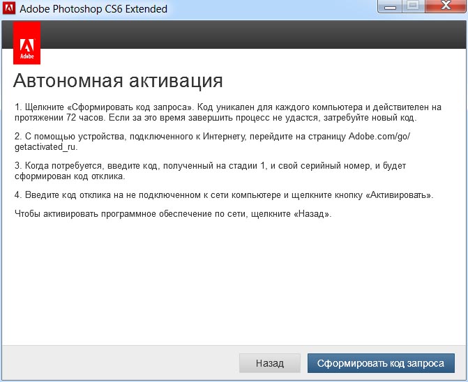 При выключенном интернете, запускаем инсталлятор Photoshop_13_LS6.exe.