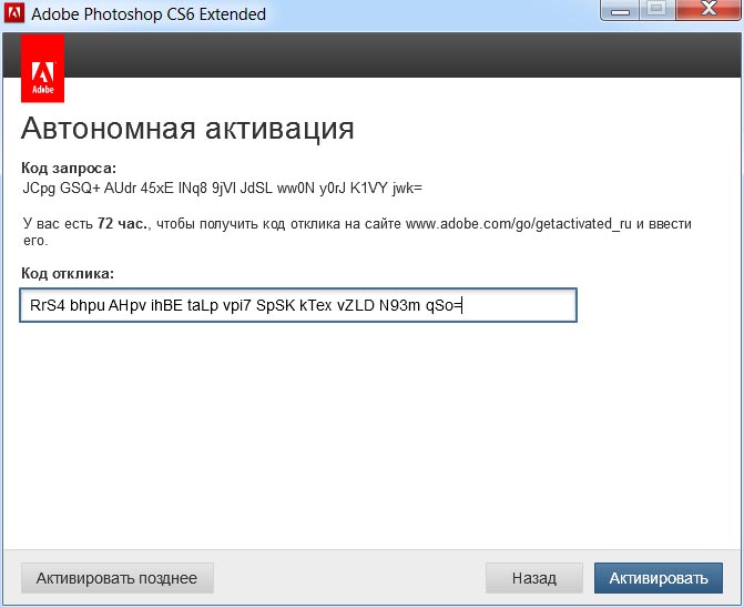 Автономная активация завершена. Приложение Adobe Photoshop CS6 Extended успешно активировано и готово к работе. Нажимаем на кнопку: Запустить.