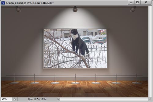 Рассмотим как добавить фото в рамку в заготовку от GraphicRiver – Your Photos on a Museum, которая состоит из однослойного PSD файла: