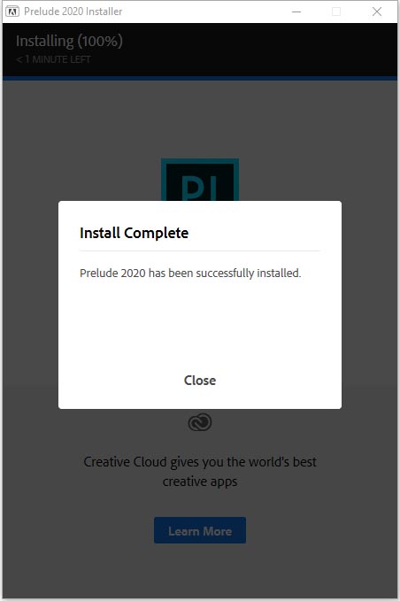 Install Complete. Prelude 2020 has been successfully installed. Нажимаем на кнопку: Close (Закрыть).