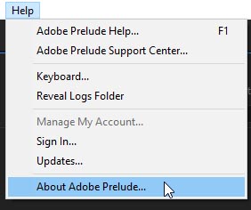 Выполняем команду: Справка > О программе Adobe Prelude...