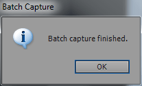 По окончании захвата, появится окно Batch Capture, где нажимаем на кнопку ОК.