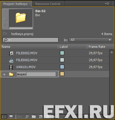 *В версии программы Adobe Premiere Pro CC 2019, удерживая клавишу Alt мы откроем папку в автономном окне Bin: имя папки.