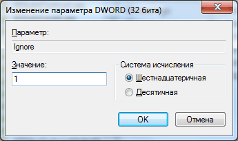 Вбиваем в поле Значение: цифру 1 и нажимаем на кнопку: ОК.