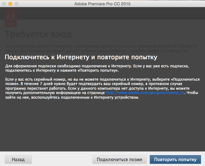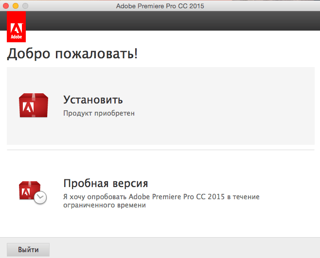 В окне Adobe Premiere Pro CC 2015 нажимаем на: Установить. Продукт приобретен.