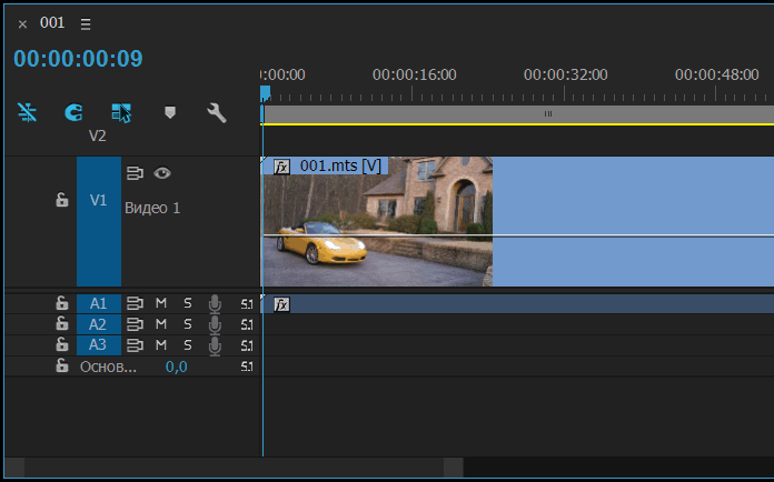 1. Регулируем высоту дорожек (видео и аудио) с помощью горячих клавиш. Итак, на таймлайне размещен клип с открытыми дорожками обычной высоты: