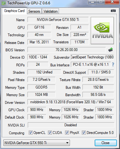 Характеристики видеокарты Gainward GeForce GTX 550 Ti 1024MB GDDR5 (Fermi 2.0 / GF116):