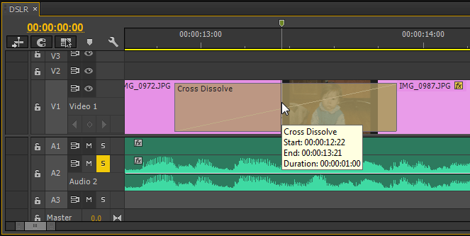 Но можно сделать это с помощью горячих клавиш, плейхед должен находиться либо на стыке, либо слева на клипе, нажимаем на клавишу T.