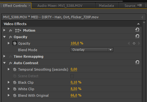 После регистрации на сайте Gorilla Grain доступны бесплатные Film Grain и Film Burns. Это реально отсканированное зерно с 35мм пленки. Видео в формате MOV. И три футажа бурнсна из реального фильма, размещаем клип на втором треке и изменяем режим смешивания слоев на screen. Скачать их можно . Объем загрузки GORILLA_GRAIN_FREE_PACK_V4.zip: 851 Мбайт. Исходное видео на линейке времени в Adobe Premiere Pro CS6: