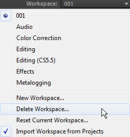 И в окне Delete Workspace в поле Name вызываем список с пресетами. Обратите внимание, что текущее рабочее пространство удалить нельзя.